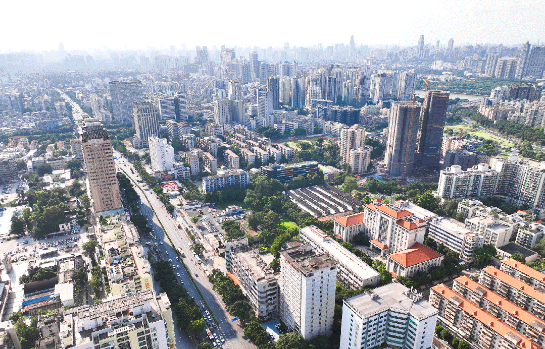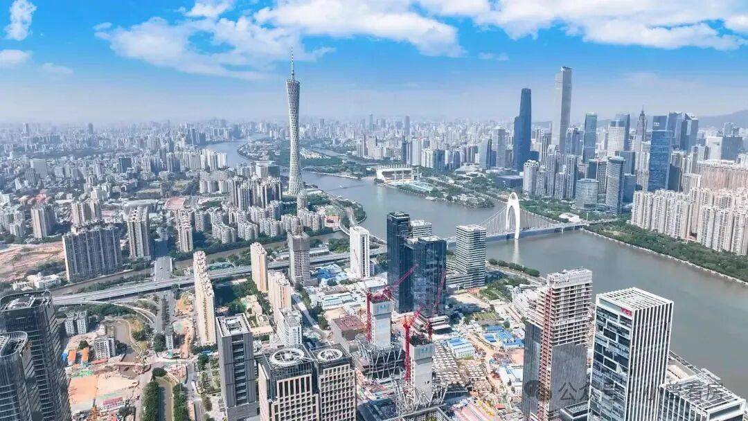 广州塔、赤岗塔公园等地标尽收眼底,不远处的珠江新城的天际线像音符一样跳跃,岭南广场也在有条不紊地施工,珠江则在安静地流淌绵延......