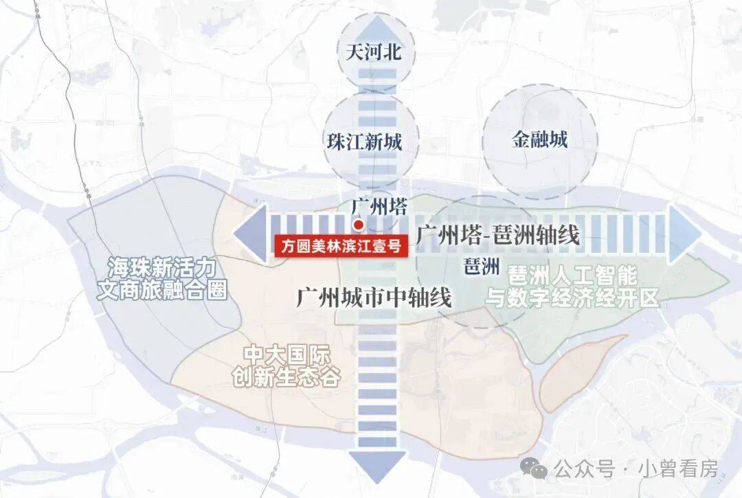 ,而且还在珠江新城-广州塔、广州塔-琶洲两大轴线的交汇处,出生已经躺赢。毕竟,珠江新城光是总部企业就有111家,占全市30%,早是广州CBD代表,而上文提到的琶洲也是国家队选手,引领广州科创发展,两者的昭示性意义已无需赘言。