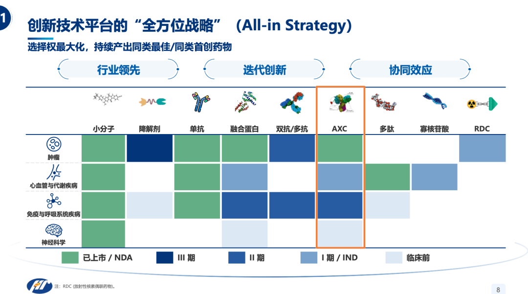 更关键的是,这套庞大的研发体系是依托于平台化、系统化且持续迭代的创新引擎。恒瑞的“全方位”技术平台战略(All-in Strategy),涵盖了所有主要治疗模式,包括小分子、大分子(如抗体)、AXC、降解剂、多肽等。