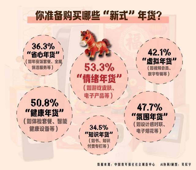 2026-02-15PG电子,PG电子官方网站,PG电子试玩,PG电子APP下载,pg电子游戏,pg电子外挂,pg游戏,pg电子游戏,pg游戏官网,PG模拟器,麻将胡了,pg电子平台,百家乐,捕鱼,电子捕鱼,麻将胡了2春节临近,社交媒体上掀起一股“新式”年货分享潮。除了传统的食材、礼品礼盒,各种“电子年货”、潮玩好物开始出现在年轻人的年货清单上。近日,中国青年报社社会调查中心联合问卷网(进行的一项有1335名受访者参与的调查显示,超九成(95.4%)受访者准备购买“新式”年货。为自己买的“情绪年货”(53.3%)、送给家人的“健康年货”(50.8%)是更受青睐的“新式”年货。