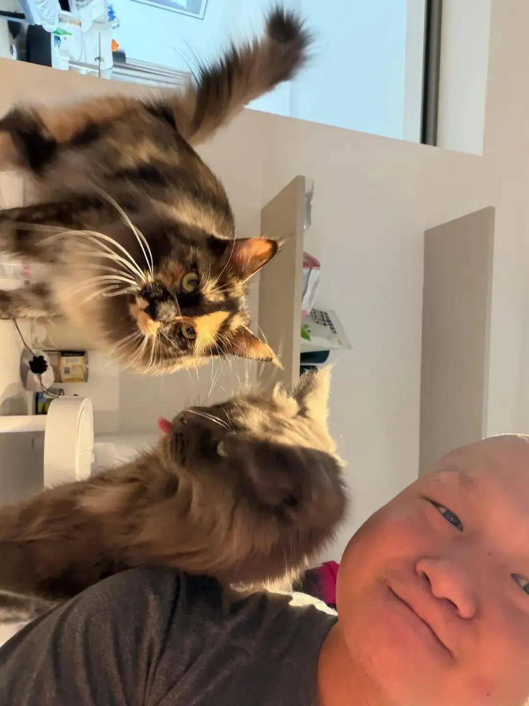喂猫、铲屎、换水、观察猫咪状态,还顺带检查门窗、带走垃圾,稍微麻烦点的喂药、剪指甲,他都免费帮忙做。
