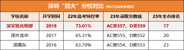 懂行的家长们都知道,深圳中考公办普高升学率仅有50%左右,而能够成功考入深圳“四大”,更是难上加难。以2023年为例,深圳“四大”本部学位数4070个,录取比例仅有3.23%。