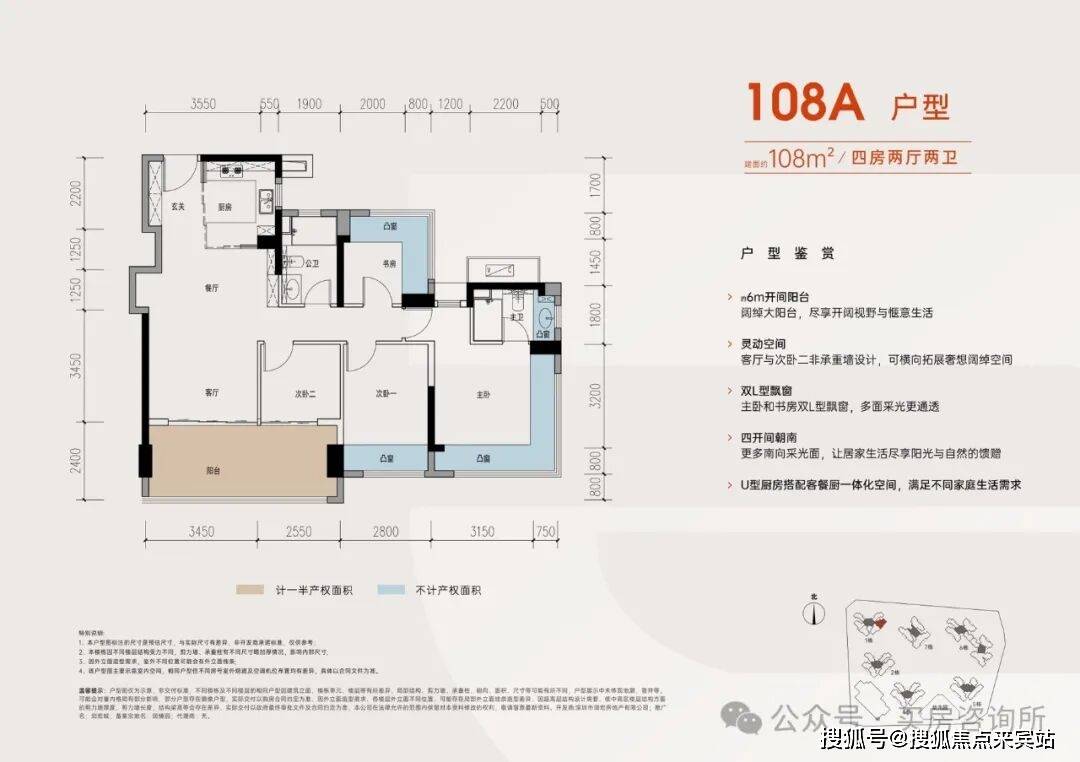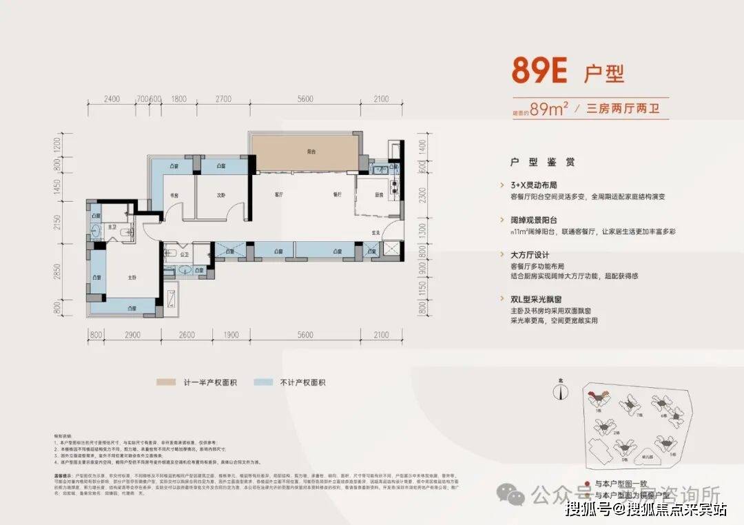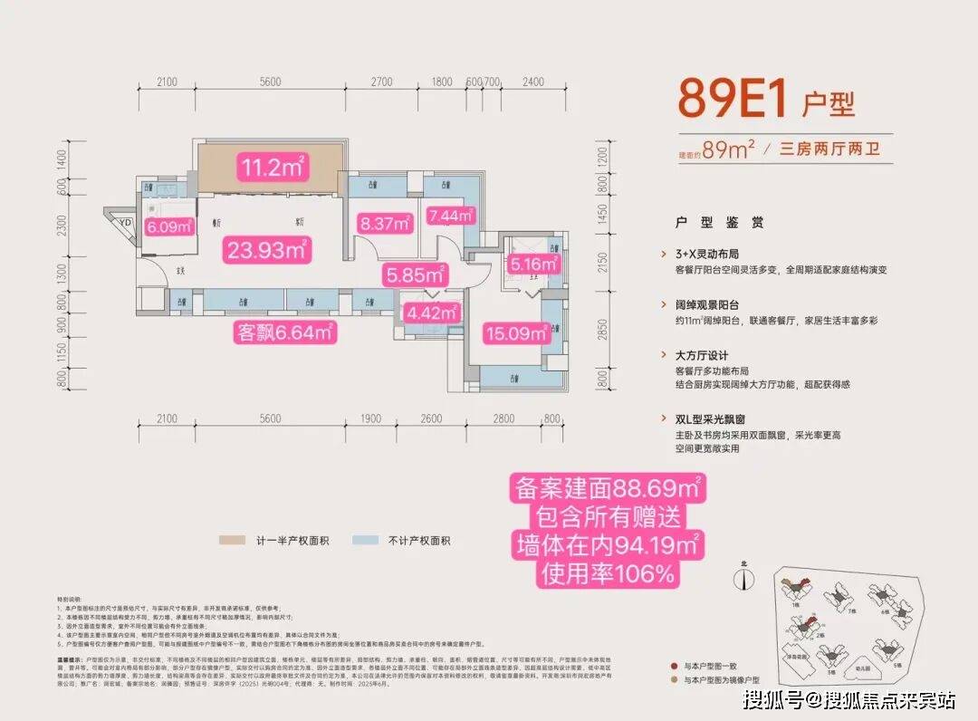 从具体的户型设计来看,居所几乎被飘窗+阳台环绕,据悉赠送率最高可达27%。