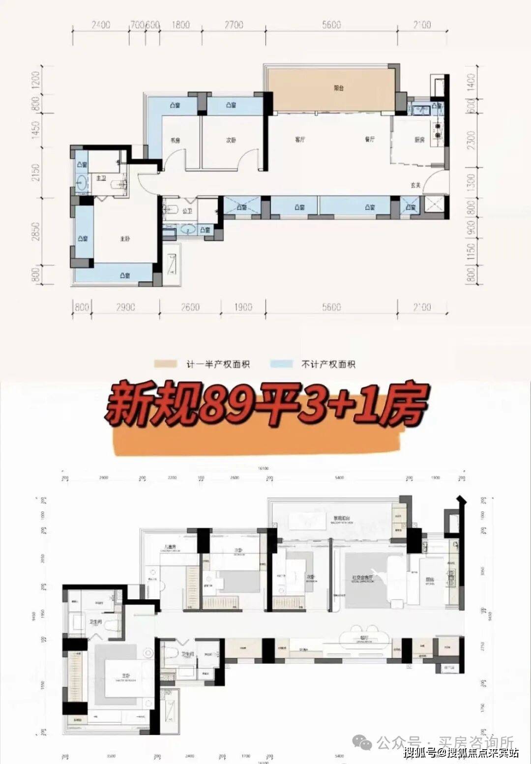 这里89E户型据了解可以改为3+1房四房,但是虽然说是改四房但是是牺牲了餐厅改为房间,他把餐厅放到了飘窗位但是有点拥挤,或者可以学润宏城一期把餐厅放到厨房一体化,当然如果不改四房单纯做三房两卫,这个户型还是挺能打的,整体空间都挺大,而且还是双面采光