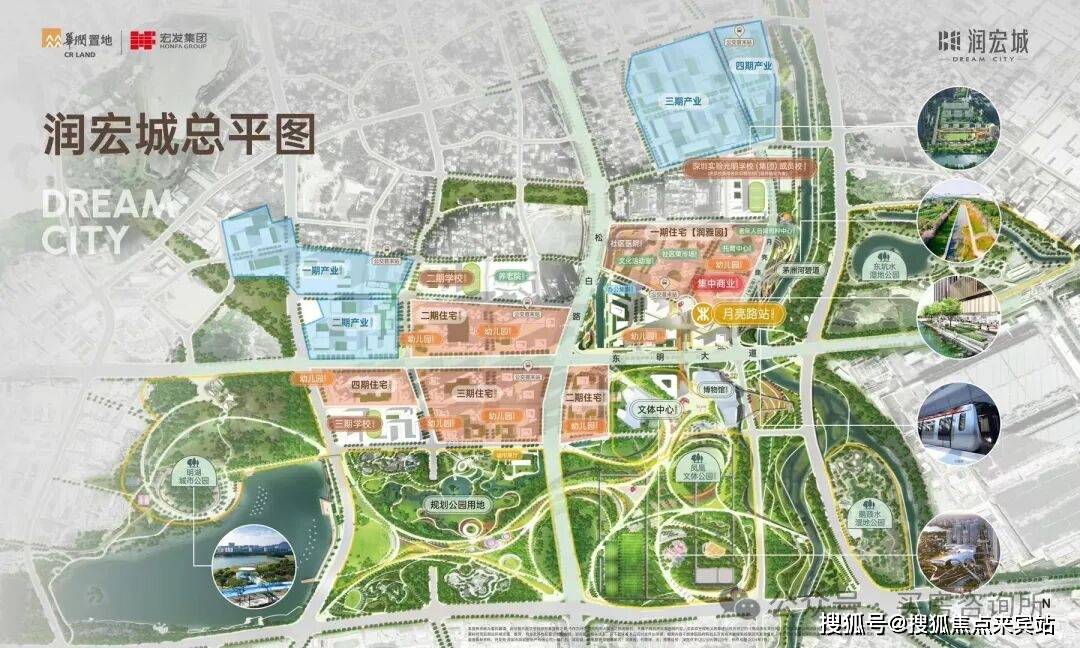 润宏城位于深圳市光明区凤凰街道13号线二期月亮路站旁,由华润置地和宏发集团联合打造,整体规划约382万㎡超大体量城市综合体,集轨道交通、优质教育、城市公园、创新产业、品质居住于一体,打造“宜居、宜业、宜游”都市生态标杆大城。
